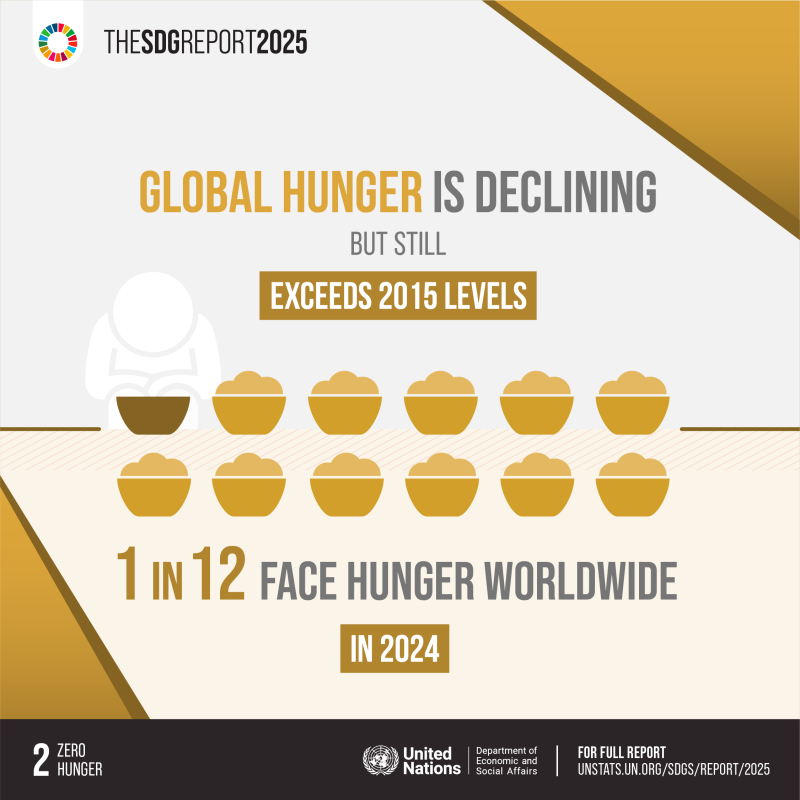 UN의 지속가능개발보고서에 따르면 2024년, 전 세계적으로 12명 중 1명이 기아에 직면해 있습니다. 영양실조는 여전히 광범위하며, 1억 5천만 명의 5세 미만 아동이 발육 부진을 겪고 있고, 가임기 여성 세 명 중 한 명 가까이 빈혈을 앓고 있습니다. 제한적인 식단은 이러한 문제를 더욱 악화시키고 있으며, 이는 특히 저소득 지역과 분쟁 지역에서 두드러집니다.